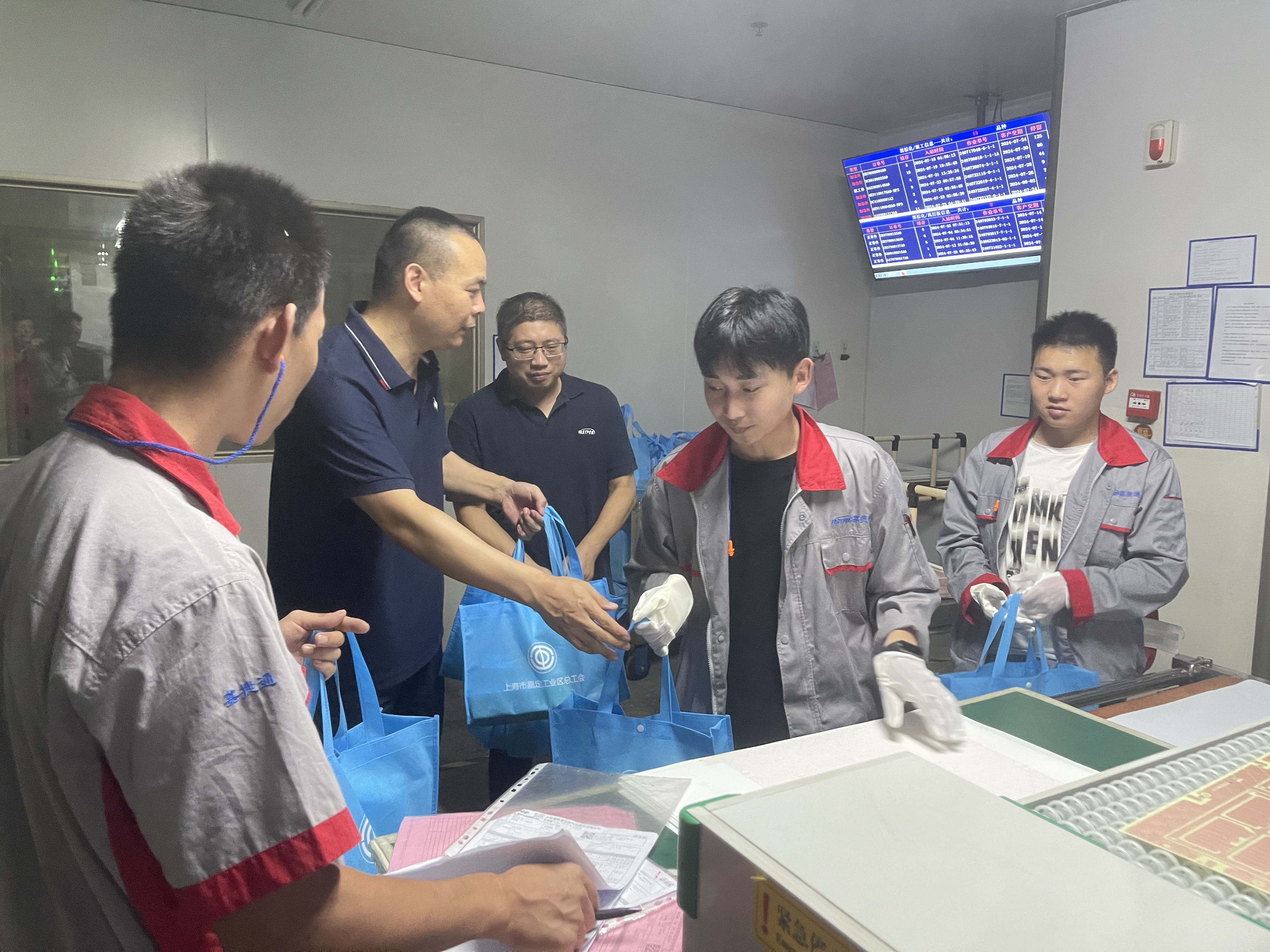 公司董事长兼总经理严总,来到湿区工序为在岗的员工送上慰问大礼包,并亲切询问员工在高温天气的工作的具体情况和面临的问题,对大家在高温天气在坚守岗位,积极的工作表示肯定,并嘱咐大家维护自已的身心健康,做到劳逸结合。并要求随行的部门及工序管理人员要特别要注意落实公司的安全生产相关工作要求,做好员工的防暑降温和劳动保护相关工作,科学合理安排排班,认真细致做好后勤保障工作,尽可能的为工序一线创造更加良好的工作条件。